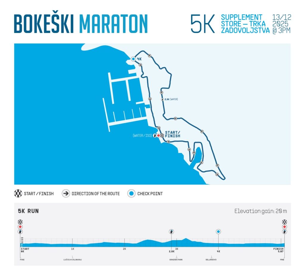 - Prčanj 2, 17.5 km, 23.5 km, 39 km, water, isotonic, fruit